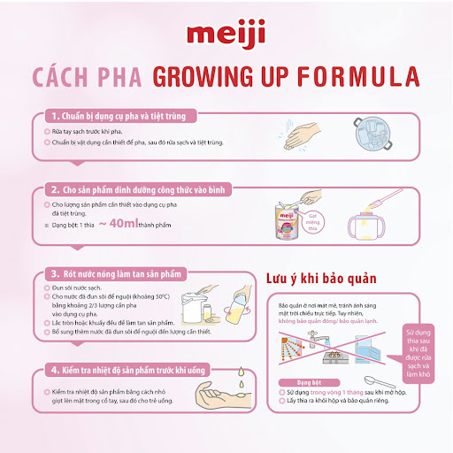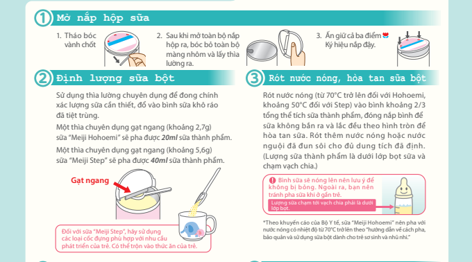 Chú ý khi pha sữa Meiji 1-3 nội địa mẫu mới cho trẻ